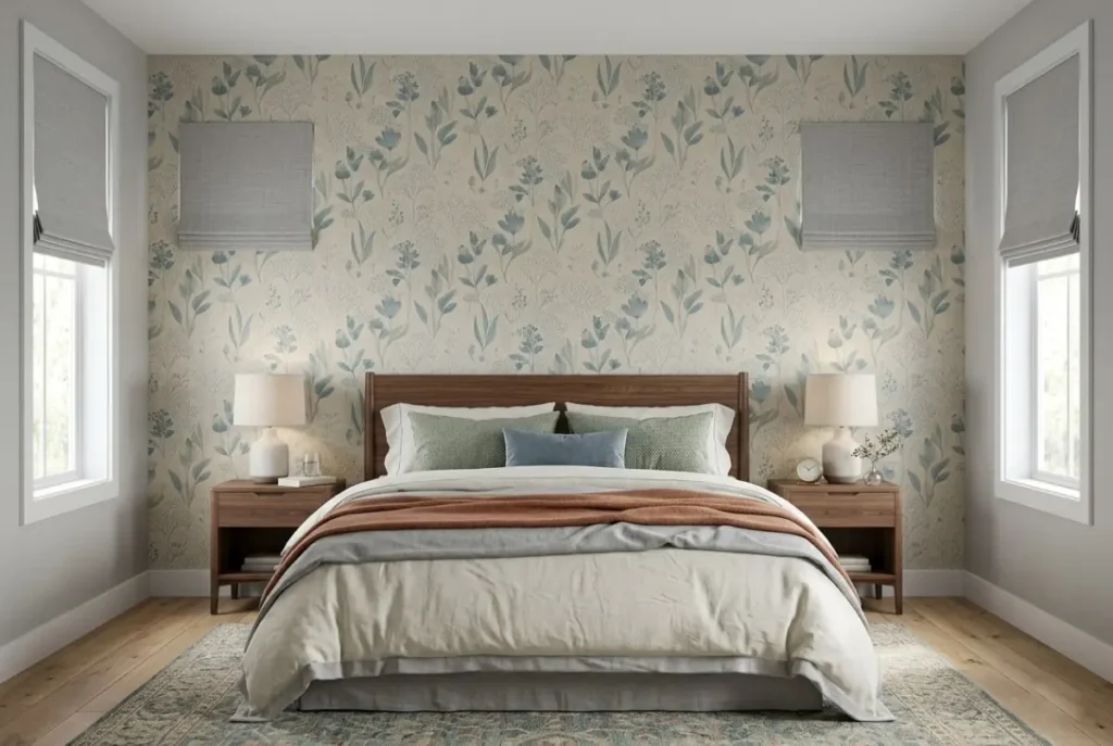 For bedrooms, we recommend non-woven or vinyl wallpapers in soft, calming tones and patterns – such as botanicals, subtle textures, or muted geometrics. These are easy to maintain, durable, and create a restful ambience. Our specialists will advise based on your room’s dimensions, lighting, and style preferences.