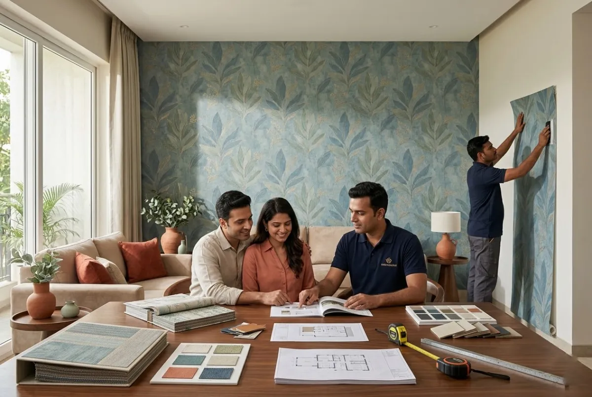 • Free Consultation & Site Visit – Our wallpaper specialists visit your home or office to help you choose the right design, pattern, scale, and finish.