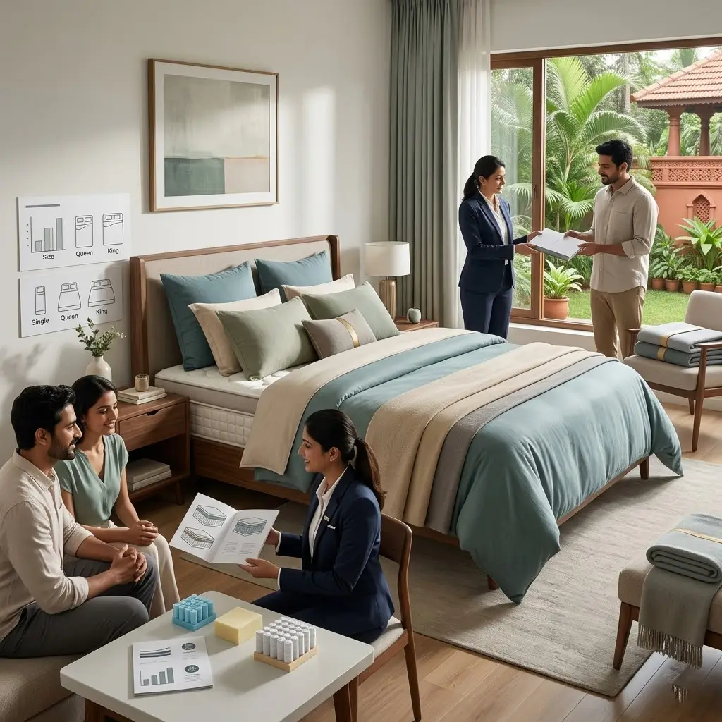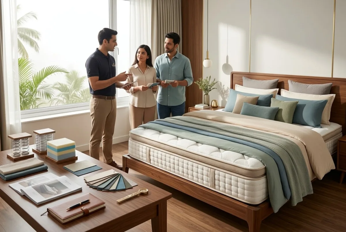 Our mattress experts guide you through the entire selection process – understanding your sleep habits, body type, health requirements, and budget – to recommend the mattress that’s truly right for you. With fast delivery and professional service across Sarjapur, Dommasandra, Whitefield, and all of Bangalore, getting a better night’s sleep has never been easier.