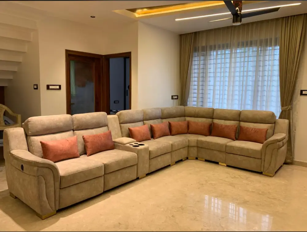 From custom-built fabric sofas in contemporary apartments to fully reupholstered statement pieces in luxury villas — take a look at some of the sofa projects our team has completed for homeowners and commercial clients across Bangalore.